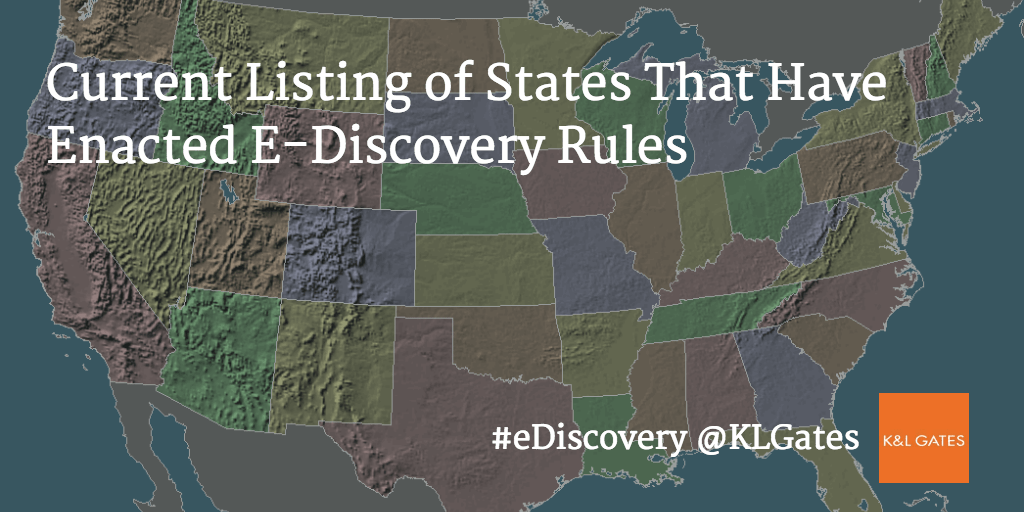 More and more states are adopting statutes and court rules addressing the discovery of electronically stored information. Here is a current list with links to the relevant provisions. Please note also that many judges have created their own forms or have crafted their own preferred protocols for e-discovery. These are generally available on the website of the individual judge and care should be taken to ensure you are aware of any such forms or guidelines in any court you may appear in.